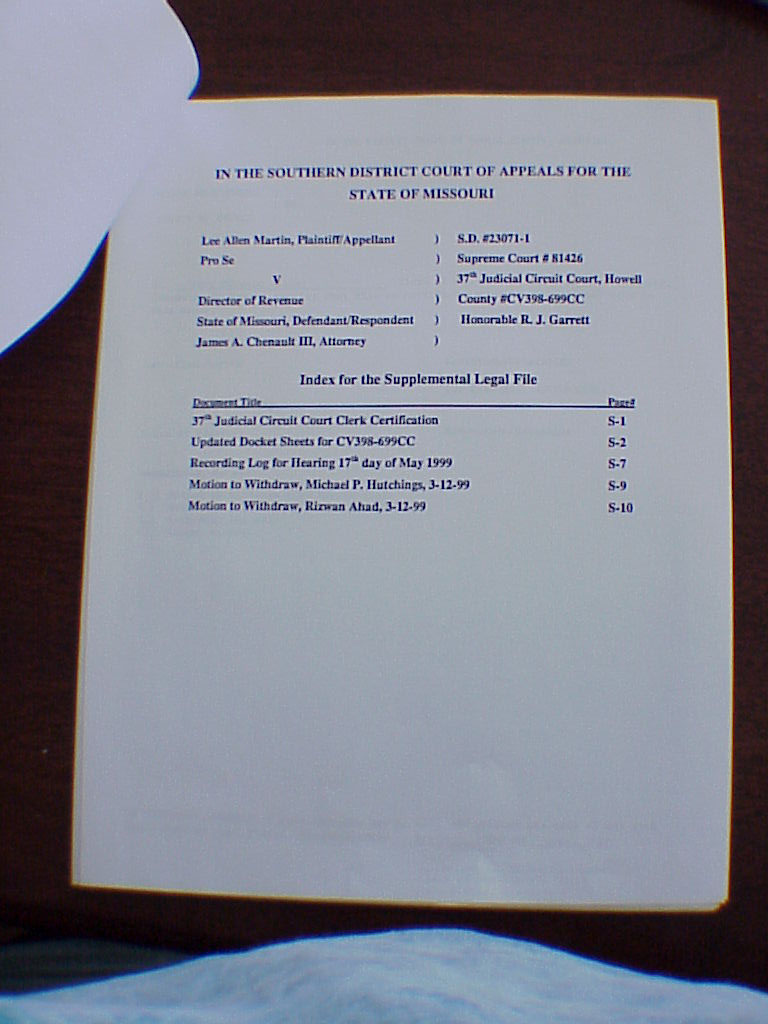 INDEX TO THE LEGAL FILE