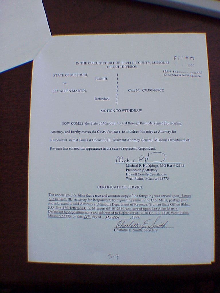 Motion to Withdraw, Michael P. Hutchings